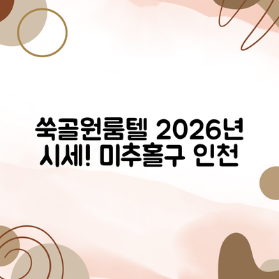 인천시 미추홀구 도화동 쑥골원룸텔 아파트 2026년 1월 시세