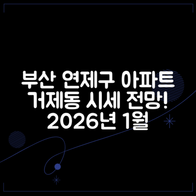 부산시 연제구 거제동 아시아드푸르지오 아파트 2026년 1월 시세